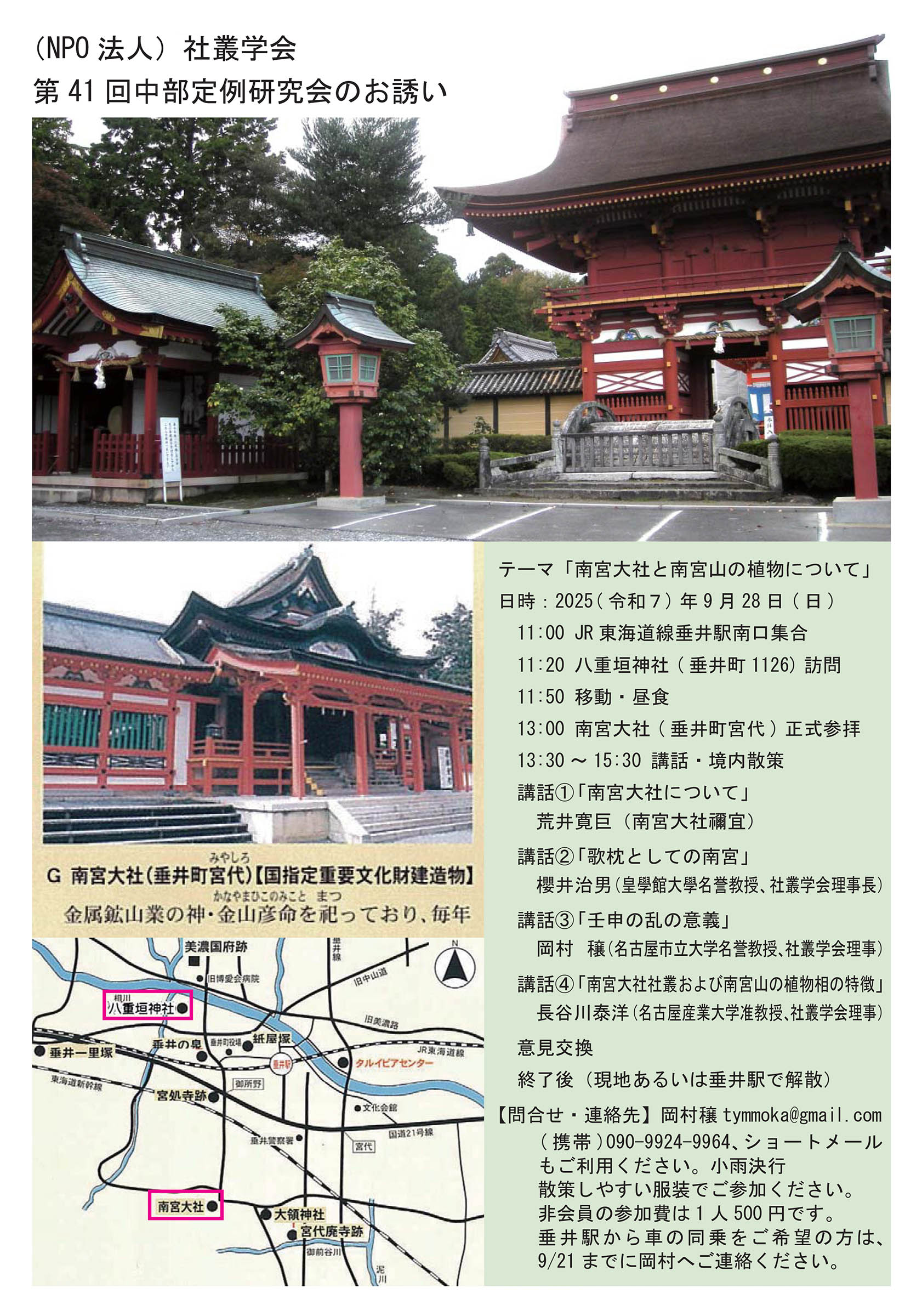 9月28日 中部定例研究会 「南宮大社と南宮山の植物について」のお知らせ